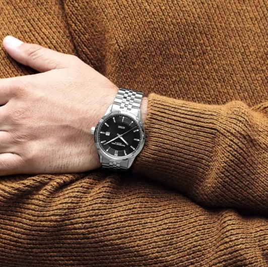 - черный циферблат с акцентом на окошко даты в расположении на 3 часа;