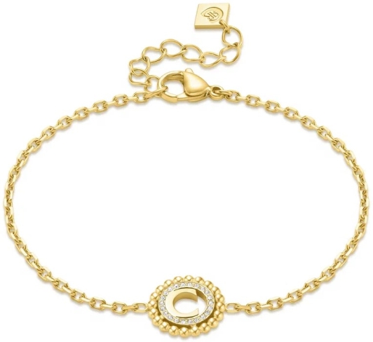 Изящное кольцо из миниатюрных шариков обрамляет букву «C», придавая кулону дополнительный объем и текстуру. Эта деликатная деталь делает дизайн браслета особенно привлекательным и оригинальным.