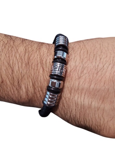 Ключевым элементом дизайна являются несколько металлических колец, украшающих браслет. Одно из этих колец имеет узор в виде греческого меандра. Меандр – это древний орнамент, символизирующий бесконечность, течение жизни и гармонию. Этот узор придает браслету исторический контекст и делает его более интересным с точки зрения дизайна.